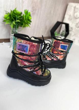 💎 Модняві та теплі луноходи. 💎 Колір: чорний. Матеріал верху-еко.шкіра + паєтки. Усередині - натуральне хутро (овчина - 60%). Дуже густе - просто пічка для ніг. ❤ Збоку блискавка. Спереду на утяжці. СТИЛЬНІ-ЗРУЧНІ-ТЕПЛІ. 23р. - 14,8см 24р. - 15,3см 24р. - 15,3см ❗ Вимірювання зроблено всередині по устілці особисто мною, похибка 1-2мм допустима. Вкладені устілки можуть не відповідати.