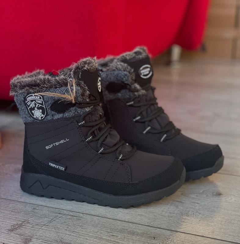 Термоботинки с технологией Softshell и с МЕМБРАЮ Tripletex от польского бренда American Club! Технология Softshell - трехслойный материал обеспечивает защиту от ветра, воды и холода и выводит влагу изнутри, когда ножка потеет. Внутри - двойная стелька, флисовая подкладка; Между внутренним и внешним слоем имеют мембрану "Tripletex", которая полностью водонепроницаема с внешней стороны, но выводит влагу и пару изнутри ботинка. Подошва эластичная, не скользкая, не трескается и не изнашивается 32-21 см
