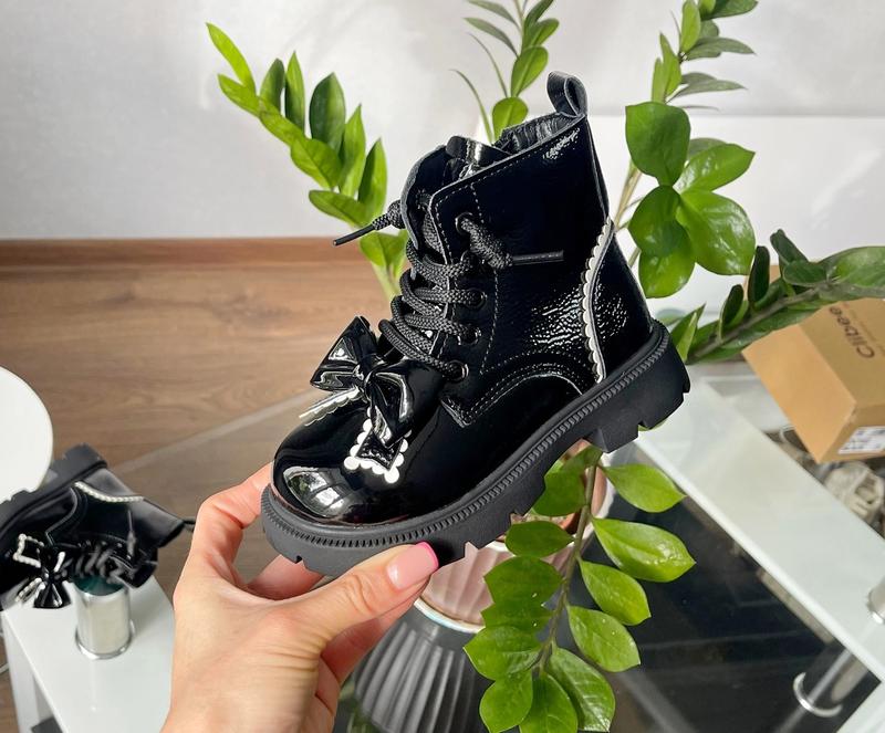 ✅Перед заказом проверьте, пожалуйста замеры, и уточните наличие размера. Благодарю. Стильные ботинки из новой коллекции Модель от Т.М JG Снаружи качественная лакированная эко-кожа Стельочка кожаная, есть супинатор Утеплені м’якеньким плюшем Боковая застежка,шнировка. ЦИНА 870 29 размер 18,4 см (2 шт