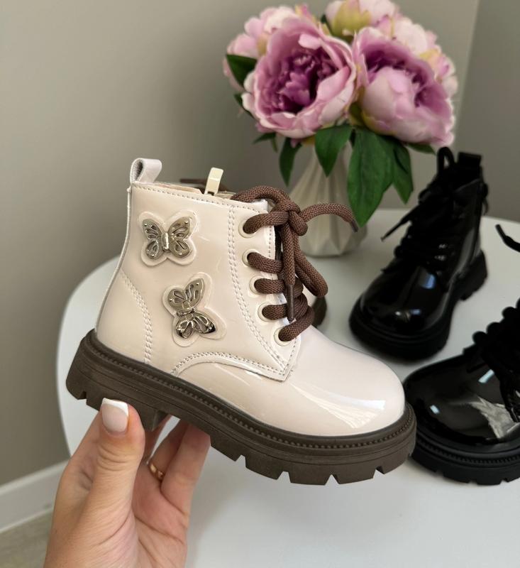 Стильные деми ботиночки Весна 2025🍂 Невероятный дизайн 😍! Верх - экокожа(лак ) Внутри на плюше Легкие и удобные Очень стильные! Подойдут под множество образов! нс 26р - 15.7 см 3 шт 27р - 16.3 см 3 шт 28р - 17 см 3 шт 29р - 17.5 см 3 шт 30р - 18.3 см 3 шт 31р - 19 см 3 шт