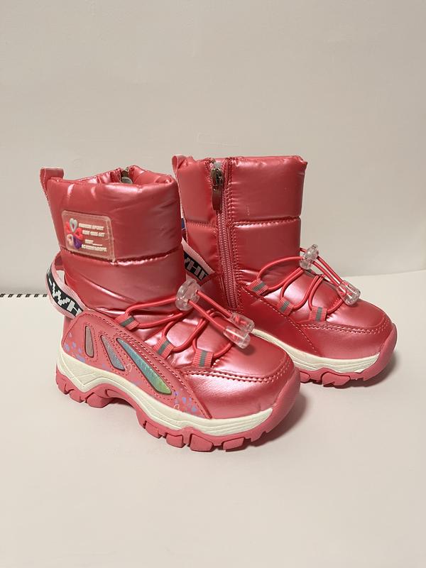 Отличные зимние ботинки для девочки. Преимущества модели: - наличие утяжек и молнии позволяет хорошо фиксировать ножку и удобно обуватся; - подошва из термопластичной резины имеет легкий вес, есть протектор, не скользит; - стильный дизайн; - плотный утеплитель подойдет на температуру до - 25 градусов. 23-14см 24-15см 25 р- 15,5 см 26-16см 27 р- 16,5 см 28 р- 17,5 см 29 р- 18 см