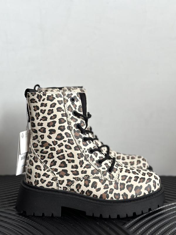 Черевики з леопардовим принтом. В наявності розмір 34,35,36,38. +блискавка збоку +петелька для полегшення взування ззаду +гнучка устілка з поліуретанової піни +контрастна гумова тракторна підошва 34 на довжину стопи 21,6 см (устілка 22 см) 35 на довжину стопи 22,3см (устілка 22.7 см) 36 на довжину стопи 22,9 см.(устілка 23.3см) 38 на довжину стопи 24.3см (устілка 24.7 см)