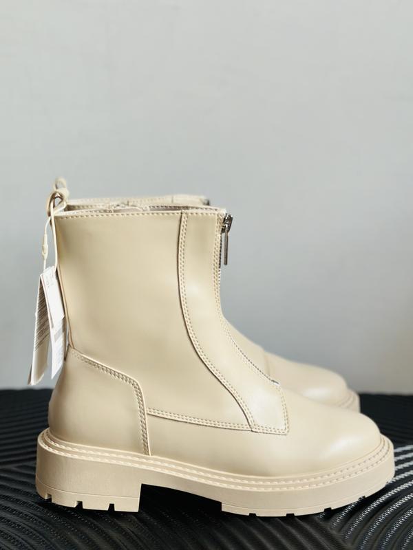 Черевики-челсі Zara, бежевого кольору. В наявності розмір 34,35,36. 34 на довжину стопи 21,6 см (устілка 22 см) 35 на довжину стопи 22,3см (устілка 22.7 см) 36 на довжину стопи 22,9 см.(устілка 23.3см)