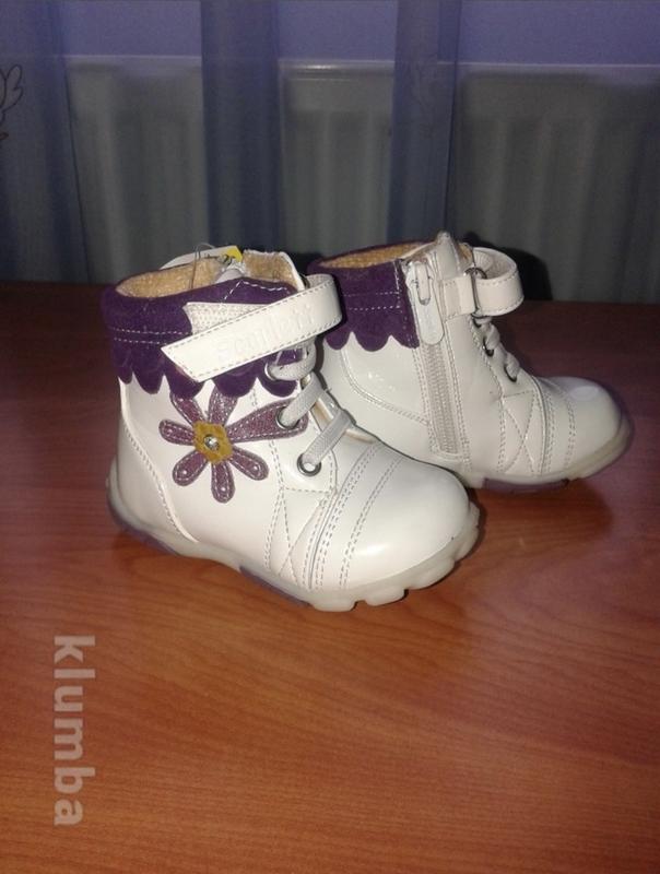 Демисезонні чобітки в чудовому стані Дуже хороша якість Матеріал верх-лак, стельковий супінатор, мʼяка підошва , що гнеться, высока тверда пʼятка Устілка 12,2-12,5 см
