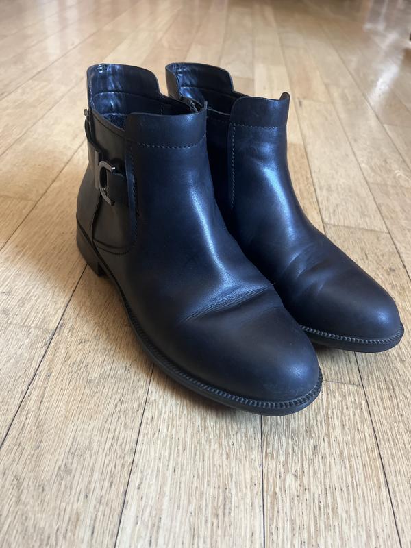 Ботинки демисезонні шкіряні. водонепроникні 22,5 - 23 см. устілка (не виймається). ньюанс на останньому фото ( зідрана шкіра, заклеєно) середня повнота Розвантажую шафу) При купівлі трьох речей з мого магазину - четветра в подарунок