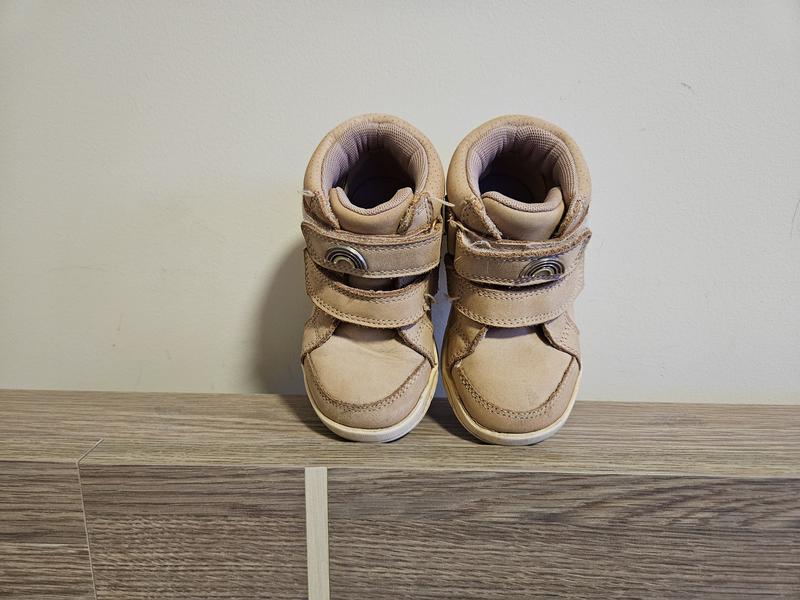 Высокие кеды фирмы НЕКСТ, 23 размер на 14 см, цвет пудровый розовый, фото не передает, на липучки, хорошо держат, выстиранные, чистые на верхней липучке радуга, пятка тоже охдоблена радугой, очень удобные и выгодные на весну или осень