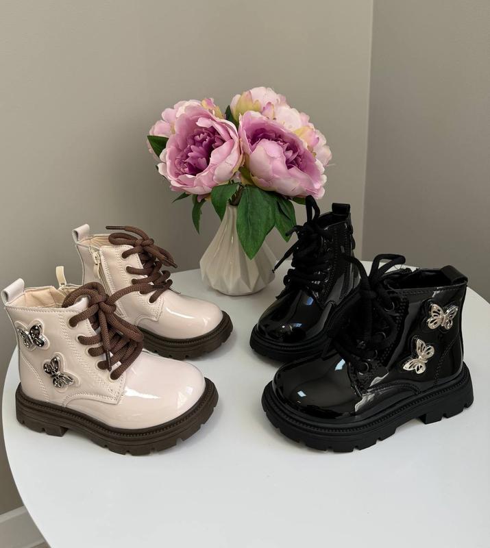 Неймовірний дизайн Верх -екошкіра(лак ) Всередині на плюші Легенькі та зручні Дуже стильні !Підійдуть під безліч образів ! Молочні 26р - 15.7 см 27р - 16.3 см 28р - 17 см Чорні 26р - 15.7 см 28р - 17 см 29р - 17.5 см 30р - 18.3 см