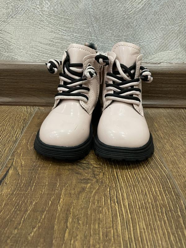 Лаковані ботинки 24 розміру.В носці були одну осінь,з дефектів маленькі подряпини на носку(фото додаю).Заміри стельки на фото.