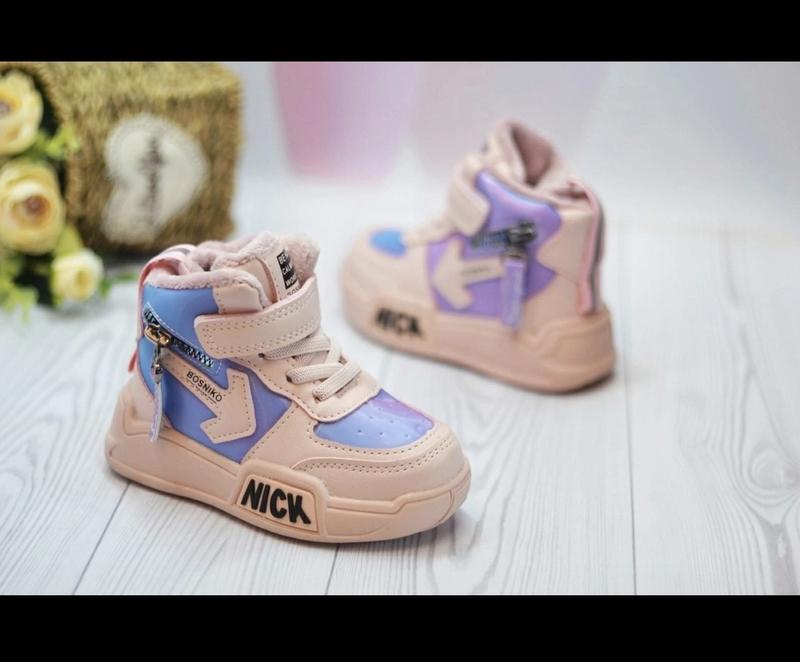 Стильные утепленные хайтопы для девочек. Сверху- качественная эко кожа. Внутри утеплены плюшем. Стелька кожа с супинатором. Фиксация липучкой. НАЯВНОСТЬ 23 размер - 14.7 см