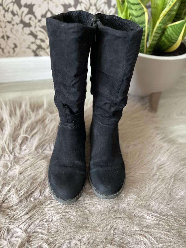 Деми сапожки удобные. Хорошо садятся на ножку. Эво замш. Стан на фото.