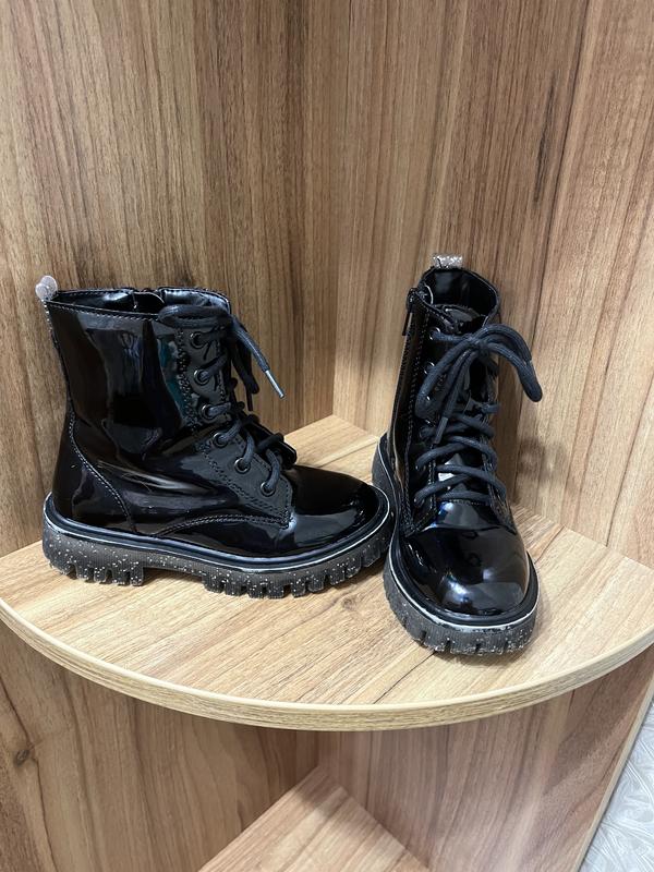 Ботинки фирменные лаковые для девочки George. В отличном состоянии. Застежка на шнуровку и молнию. Подошва полупрозрачная с блестками 29р -18 см. Они утепленные, имеют текстильную подкладку. Носилы только осеннюю, покупали новые.