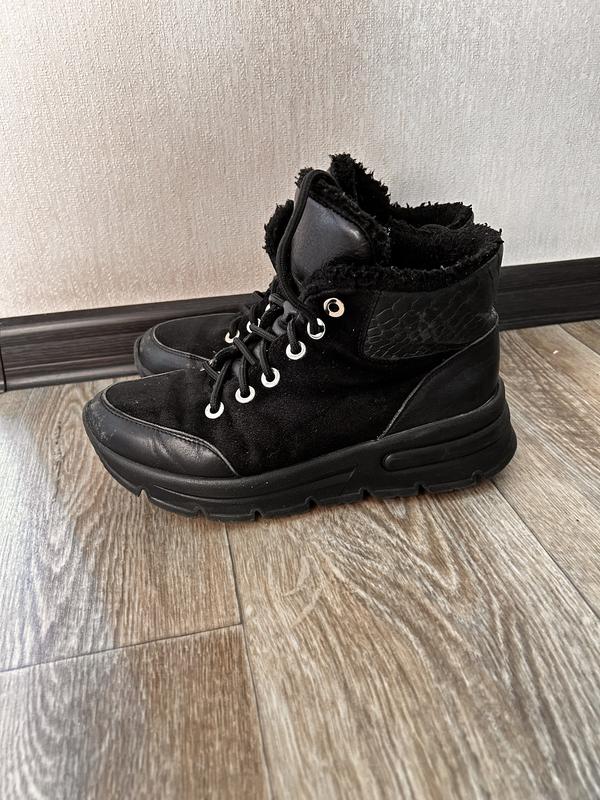 Зимние ботинки, натуральная кожа с замшей, внутри овчина. Состояние на фото- все целое, только стертые спереди, можно закрасить краской и будут в идеальном состоянии. Длина устолько 23.5, но нужно учитывать, что спереди ботинки сужены.