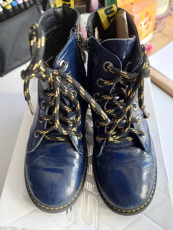 Ботинки для девочки патриотические. Синий лак. Шнуровка желто синяя. Стан хороший. Есть еще такие же на размер меньше. И куртка к ним демисезон.. Смотрите все мое объявления. Фото 3; 4; 5-31 размер