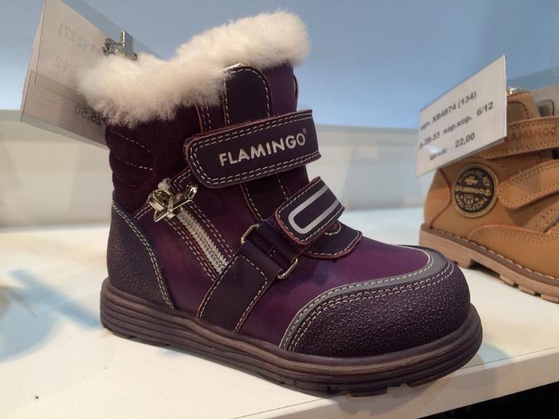 Зимові кожані черевики Flamingo Внутрі шерсть Сбоку молнія 23 розмір 15 см