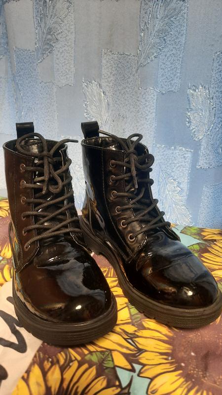 Черевички лаковані шкіряні. Довжина устілки 20 см. Зсередини на байці. Стан видно на фото. Нюанс показала на останьому фото. Там все ціле, лише не блищить.