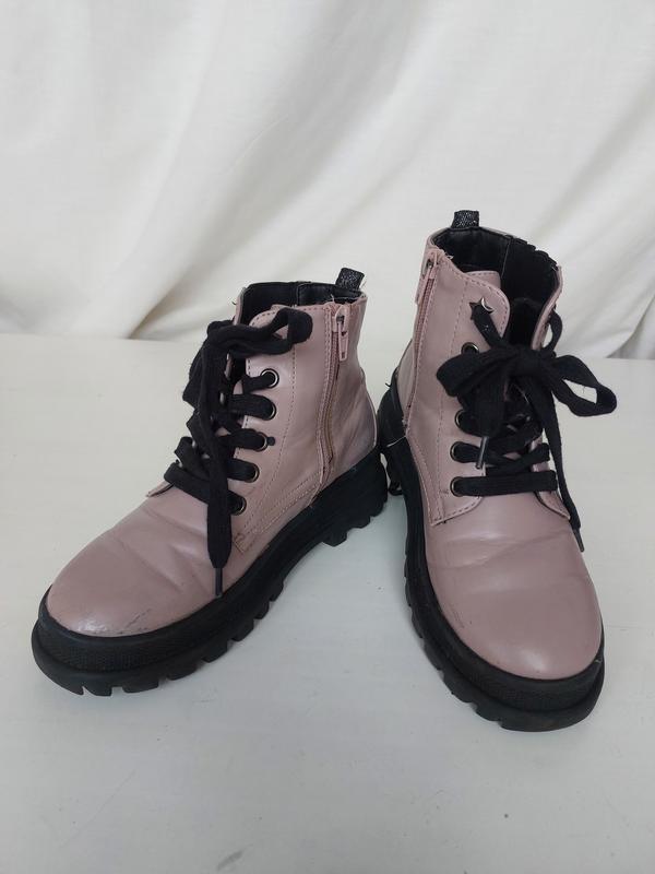 Ботинки демисезонные на подкладке, размер 34, длина стельки 22см. Стан красиво имеет незначительные следы носки, не промокают.