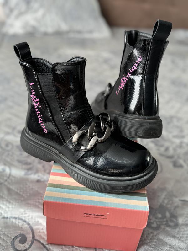 Чоботи лаковані в ідеальному стані, носочки видно на фото не збиті. Устілка не виймається, десь 20 см. Підійдуть на широку ніжку. Відправляю укр та новою поштою, можна шафа доставка, якщо потрібна примірка.