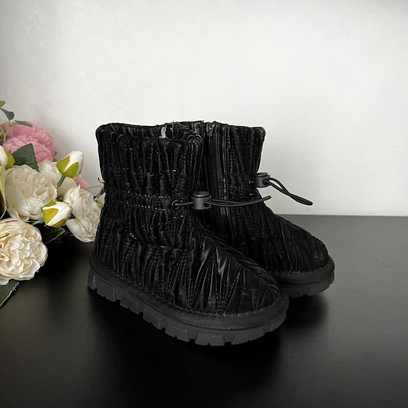 Сезон: зима Розмір: 26 Стелька: 16-16.2 см Колір: чорний Висота черевичка з підошвою: 14 см Висота підошви спереду: 1 см, ззаду 2 см. Стильна модель для дівчинки, підійдуть до будь-якого образу. Верх з непромокаючої плащівки з оксамитовим переливом, утеплені товстим шаром овчини, зручно одягати, легкі, підійдуть для ходьби на кожен день. Ідеальний стан, жодного дефекту. Відеоогляд на прохання відправлю.
