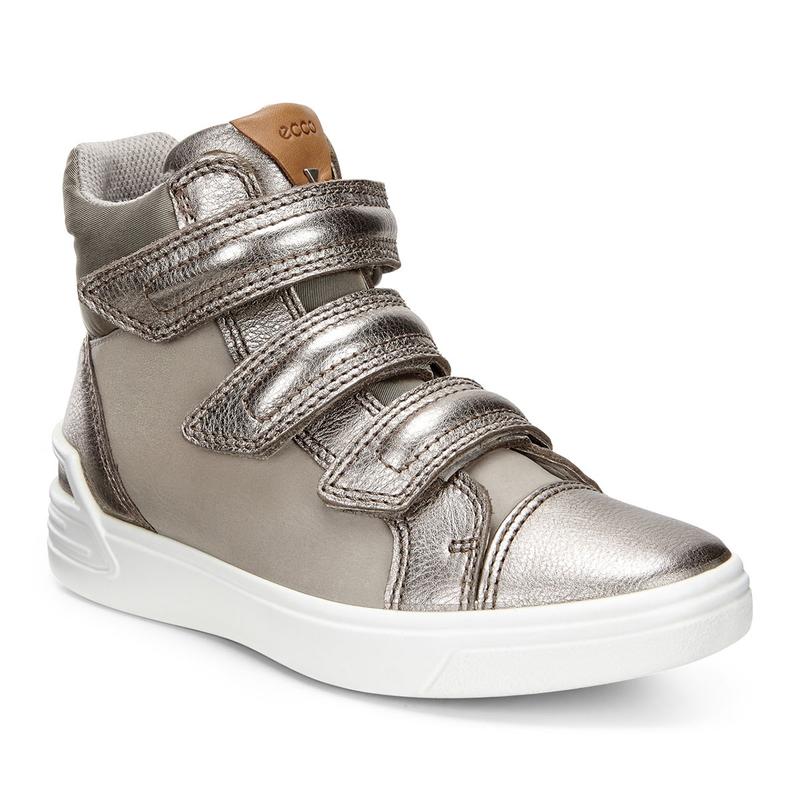 Легкі дитячі черевики з натуральної металізованої шкіри та текстилю. Така модель порадує ваших модників своїм яскравим сучасним дизайном. Три широкі ремінці на липучці добре фіксують ногу і дозволяють швидко і легко взутися. Контрастна широка підошва має гнучкість і легкість. Стильні черевики чудово доповнять осінній гардероб дитини.