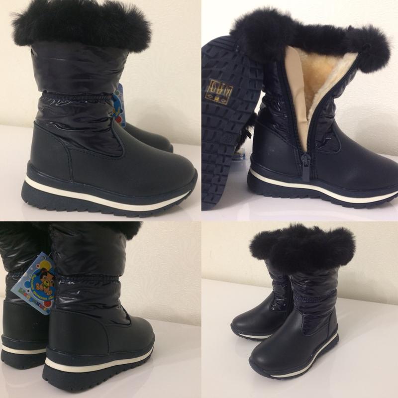 У наявності. ТМ Шалунішка. Чобітки , ботіночки темно-сині. Верх еко-шкіра та текстиль, у середині штучне гарне хутро. Гарна якість. Розмір 25-15 см устілка.