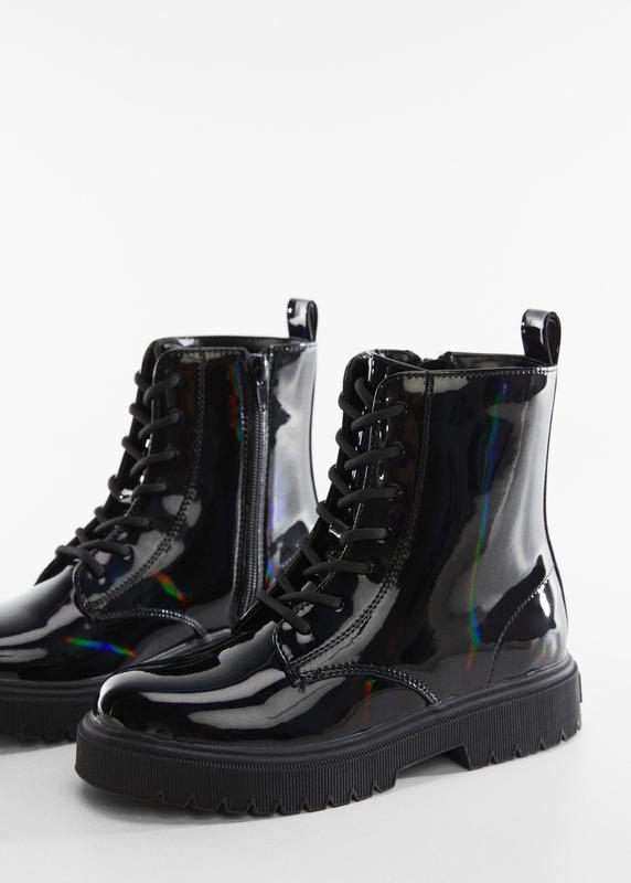 Лакированный эффект . Эффект голограммы . Тракторная подошва. Круглый мыс. Шнуровка. АРТ. 57035787