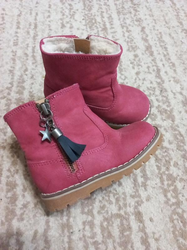 Стильні черевички для дівчинки. Зверху - якісний шкірозамінник. Всередині - підкладка з штучного хутра. Устілка з шкірозамінника. Застібка - блискавка. Міцна підошва. Склад: поліестер, поліуретан, ґума. стан нових
