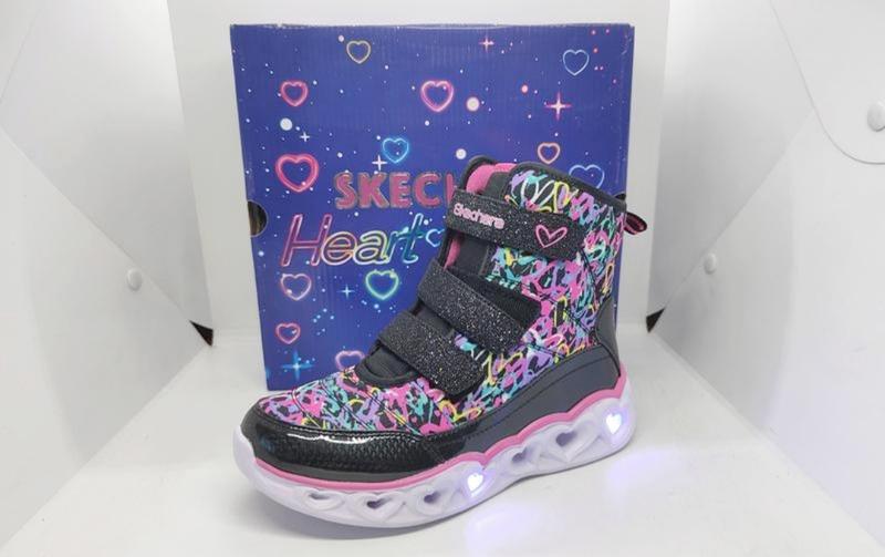 стильные ботинки Skechers S Lights оригинал яркая модель на каждый день. Верх из текстиля со вставками из искусственной кожи. На липучках для легкого обувания. Внутри комфортная подкладка из текстиля. Легкая промежуточная подошва из ЭВА с хорошей прочностью и гибкостью . Прочная резиновая подошва для лучшего сцепления с поверхностью . Яркие светодиоды в подошве Осень -зима EU 36, по стельке 23,5