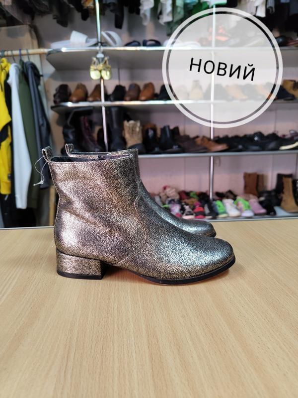 стильні черевики на дівчинку, розмір 35 устілка 22.5см, висота черевичка 14см, замінник, колір сіро-золотистий, стан новий