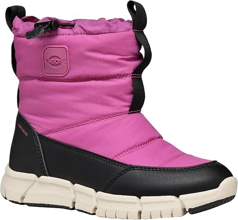 Geox – это непревзойденное качество и высокие технологии в производстве обуви для детей, с учетом всех особенностей строения стопы ребенка. Итальянская детская обувь GEOX учитывает все ортопедические требования и возрастные особенности каждого ребенка для придания максимального комфорта изделиям. Ботинки на кулиске Geox Flexyper с мембраной Amphibiox на ультралегкой подошве, в которых будет комфортно как в горах, так и в городе. Цвет Fuchsia Black В наличии: размер 35 евро, длина стельки 22,5 см до загиба на пятке размер 37 евро, длина стельки 23,5 см до загиба на пятке размер 38 евро, длина стельки 24,0 см до загиба на пятке размер 39 евро, длина стельки 25,0 см до загиба на пятке Преимущества модели Geox Flexyper 1. Полная водонепроницаемость и дышащие свойства — благодаря AmphibioxTM + RespiraTM мембранам 2. Теплый комфорт — меховая подкладка защищает от холода 3. Легкая подошва с вентиляцией - гибкая, амортизирующая, с дренажом влаги через микропоры 4. Удобная обувь - застежки кулиски, внутренняя стелька вынимается 5. Верх: нейлон 6. Рекомендуемый температурный режим: от ~0°C до -20°C (оптимально — от -5°C до -15°C для ежедневной носки) Важно: • Для активного движения (игры, прогулки) — комфортно даже при -15...-20°C. • Если ребенок много стоит или сидит на морозе - лучше выбирать дополнительную термоностку