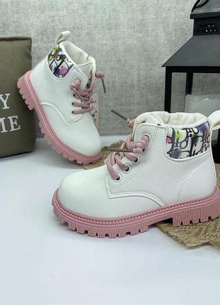 Стильні черевички 💗💗💗 Неймовірний дизайн 😍 Ваші принцеси будуть в захваті від них Якість неперевершена 🔥 Рекомендуємо ! Верх -якісна екошкіра Всередині на флісі Устілка шкіряна з супінатором Легенькі та зручні 30р - 18.2 см