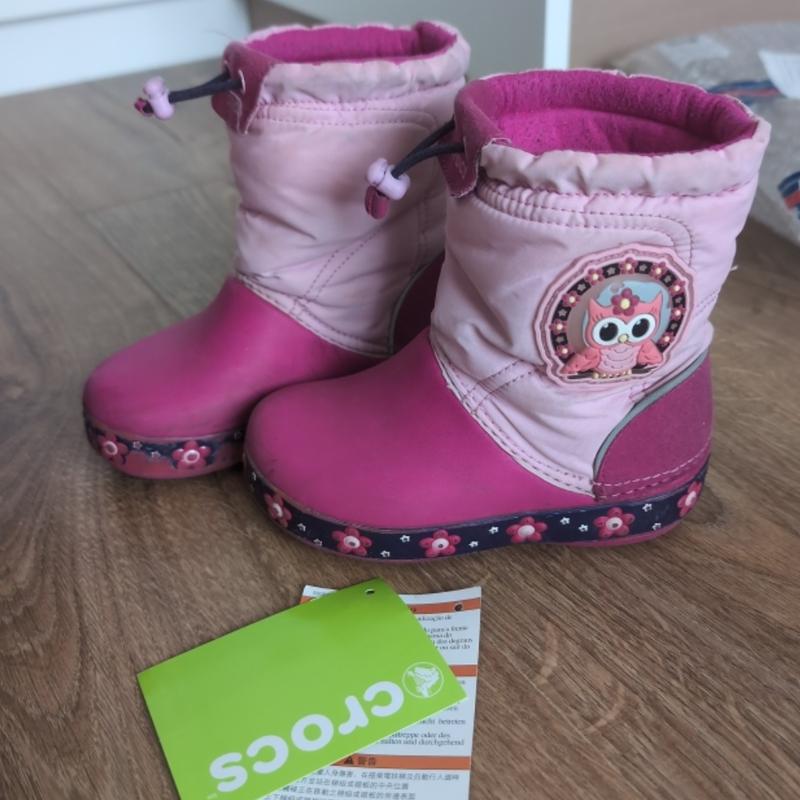 Черевики/чоботи crocs рожевого кольору, стан майже ідеальний, з зовнішньої сторони по низу черевика трошки потертості. Розмір c9 (р. 25-26)