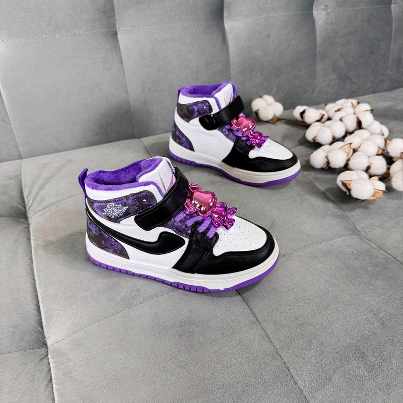 💕Хайтопы белые с фиолетовым. Верх - еко-шкіра. Подкладка флис, плюш. Подошва - ПВХ, стелька - текстиль. Застежка на липучке 📐Замеры: 31 - 18,7 32 - 19 33 - 19,5 34 - 20,3 35 - 20,7 36 - 21,5