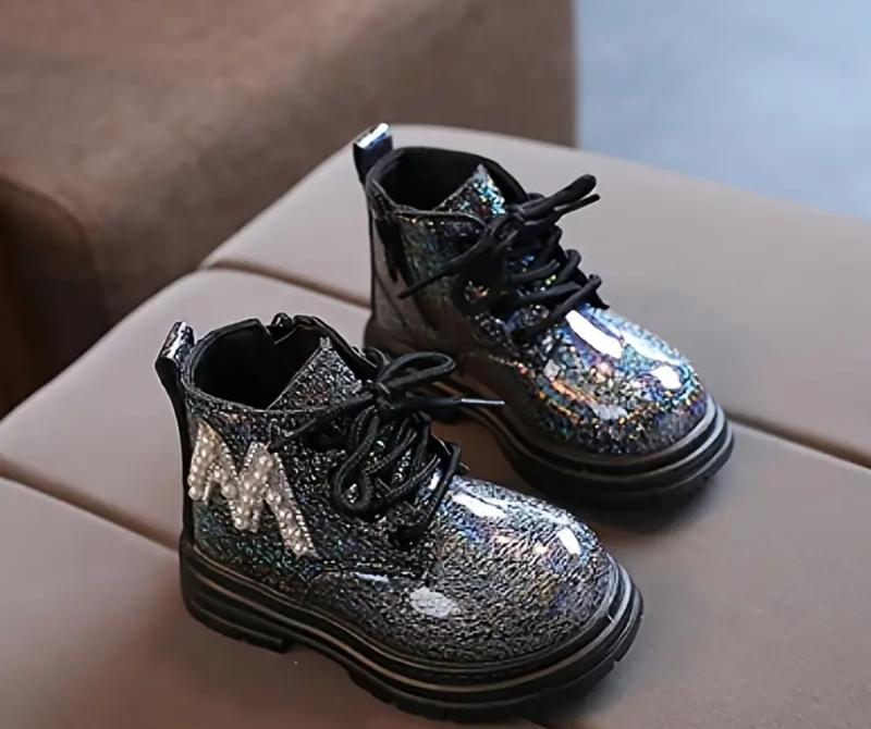 Модные короткие сапоги для девушек с мягкой подошвой, с жемчужинами. Удобные, прочные и стильные. Стелька 16 см