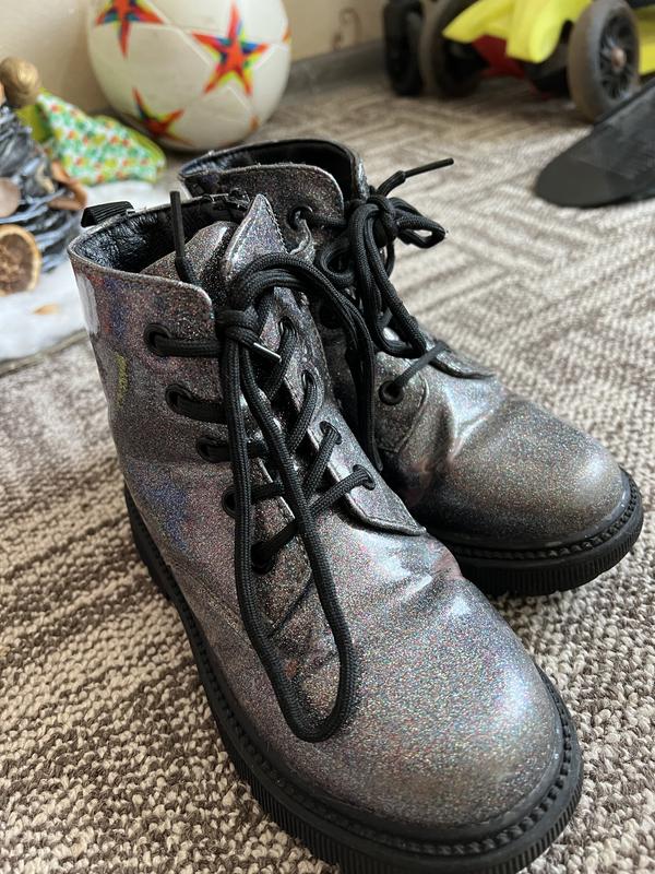 Класні чобітки на осінь/весну, яскраві і не маркі. Устілка на фото. В місті згину трохи надувся лак, не впливає на носіння й не кидається в очі, на останньому фото показала