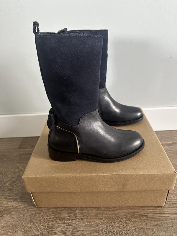 Черевики утепленні , демі чобітки бренду Friboo Колір темно синій , ззаду декоровані бантиком Верх комбінована шкіра та замша , підкладка комбінація шкіри та утепленого текстилю , устілка шкіра Застібка на замок Присутній язичок для зручності взування Легка синтетична підошва Нові, в коробці, фото додам Розмір 27 ( 18,5 см повністю устілка )