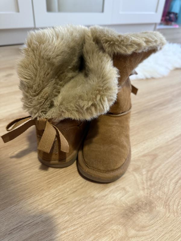 Теплі зимові чоботи угги Некст на дівчинку розмір 30-31 або 11. Натуральна замша, всередині фліс, також дуже гарне пухке та м’яке хутро! Устілка 19см повністю. На стопу дитини 18-18,5 см. В чудовому стані.