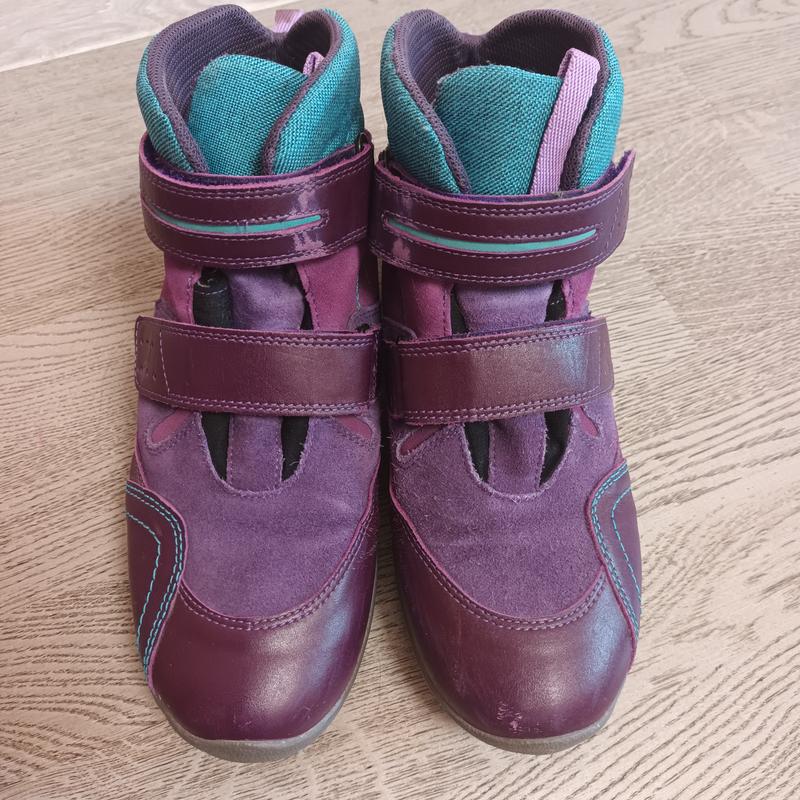 Хорошее состояние, из недостатков-потертостей на лямочках и царапинка на 1 му, все на фото. В середине небольшой черный мех можно носить холодной осенью или ранней зимой. Стелька ровно 24 см.Верх натуральный, кожа и нубук! Липучки очень красивые, подошва в идеальном состоянии! Не промокают, очень теплые.