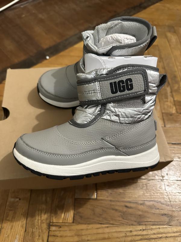 Шкіряні, дуже теплі, не промокають, стан ідеальний, липучка працює, є трошки потертість зверху на сріблястій тканині, якщо уважно придивитися