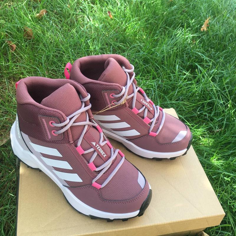 итячі черевики з колекції adidas TERREX. Модель з рифленою, неслизькою підошвою. - Зйомна устілка ADIFIT® з принтом гарантує ідеальне прилягання взуття до стопи. - Круглий, щільний носок. - Жорстка п'ятка стабілізує каблук і утримує ногу у взутті, щоб вона не вислизала під час руху. - Класична шнурівка забезпечує індивідуальне регулювання стопи. - Піднятий верх сприяє зміцненню щиколотки, що захищає від неконтрольованих рухів під час пересування по нерівній поверхні. - Петля ззаду полегшує надягання взуття через ногу та допомагає її зняти. - Міцна рифлена підошва забезпечує високу адгезію до землі. - Довжина устілки становить: 20,5 cm. - Параметри вказані для розміру: 33.5. ID Товару: 9BYH-OBK09U_34X Код виробника: IF6524