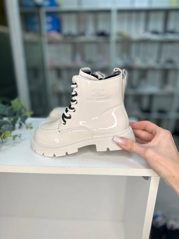 Осенние деми тимбы для девочек🍂 Стильно смотрятся на ножке🤍 Верх - еко лак Внутри утепленные плюшем, стелька тоже утепленная👌 Пяточка твердая, будет отлично держать ножку. Присутствующий боковой замочек ✅ Объем можно подтянуть шнуровкой Подошва красиво гнется Замер внутри, стелька не вынимается Размеры: 32р - 19 см 33р - 19,7 см* 34р - 20,5 см 35р - 21 см (4) 36р - 21,5 см 37р - 22 см