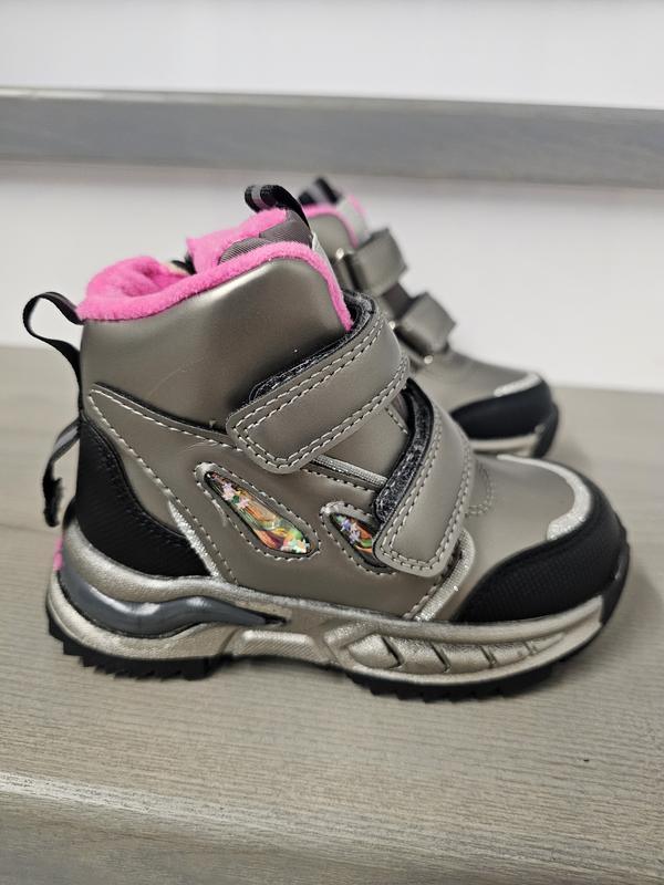 Зимние ботиночки на липучке, сбоку замок, внутри овчинка, легкие и теплое. Размеры и длина по стельке: 25-16.5см