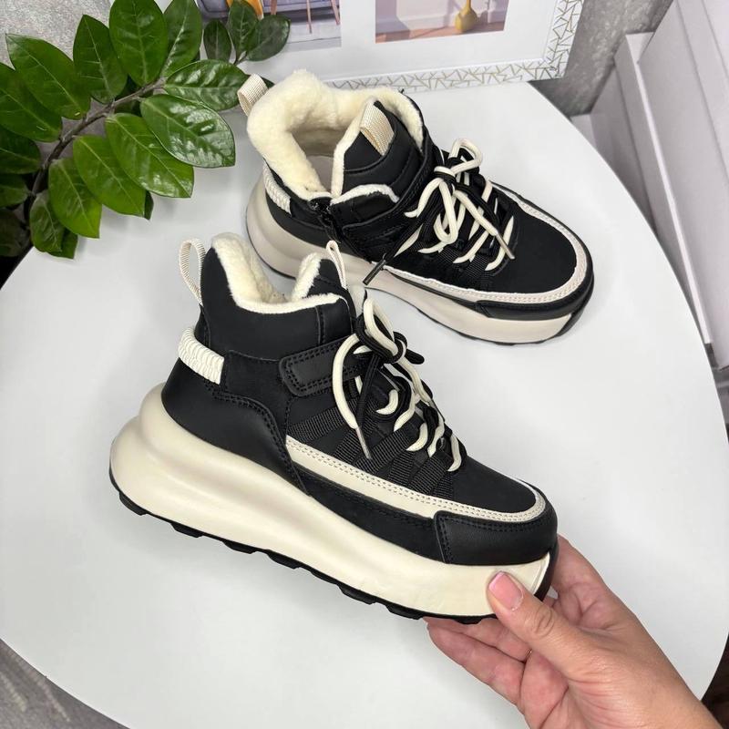 Верх якісна еко шкіра. Всередині утеплені мʼякесеньким плюшем. Устілка шкіряна з супінатором. Фіксація на липучку , шнурівка. Збоку є замочок. Легкі та зручні. 32 - 20,7 см 33 - 21,3см 34 -21,8см 34 -21,8см 35 -22,5см