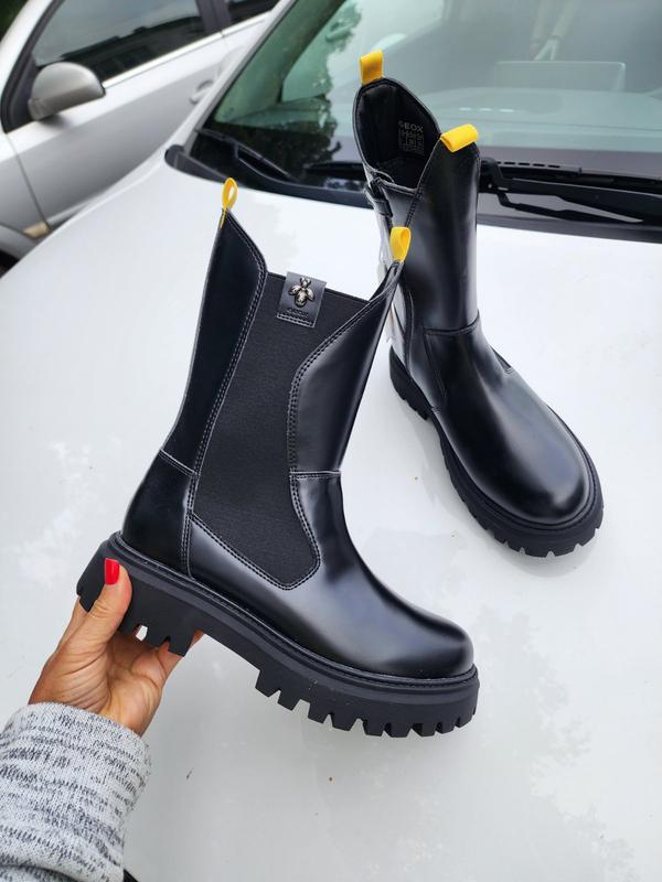 Новые стильные демисезонные ботинки Geox Maquinnens на тракторной подошве Оригинальный. Привезенные из Англии. В коробке разм.38. полная длина стельки см высота ботинка см (внутри см) рекомендований запас 10-15мм обувь рассчитана на узкую ножку Geox - это обувь, которая дышит. Данная модель изготовлена с применением технологии Amphibiox – лучшей защиты от дождя и непогоды в сочетании с максимальной воздухопроницаемостью и естественной терморегуляцией. Цвет: черный Верх: экокожа Подкладка: Текстиль Застежка: молния Подошва: резиновая, тракторная Утеплитель: нет Сезонность: осень/весна