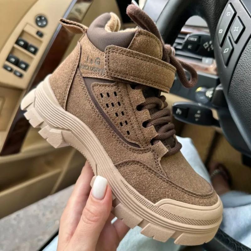 ЗЗр -21.3 сМ З4р -22.0 сМ З5р -22.5 сМ З6р -23.2 СМ З7р -23.8 сМ Стильная осень новинка в наличии! Верх качественная эко кожа (замш) Внутри утеплены флисом, стелька тоже утеплена с супинатором Имеют шнуровку и липучку для фиксации Также боковой замочек Шикарного качества, удобные и легкие