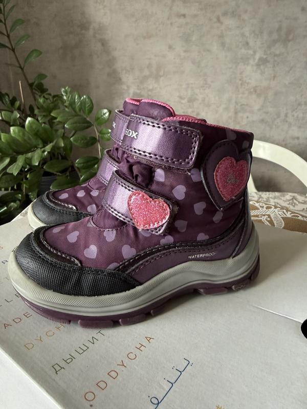 Дитячі зимові черевики Geox Flanfil 24 р Матеріал верху: штучні матеріали + текстиль. Всередині: штучна вовна + технологія Geox Waterproof- це інноваційна технологія, яка надійно захищає від вологи та дозволяє дихати нозі. Не промокають Підошва: Термопластична гума - легка та міцна, з відмінним зчепленням. Посилений носок. Зручна система швидкої фіксації на 2 липучки. Вдягали і осінню, і весною, і взимку.