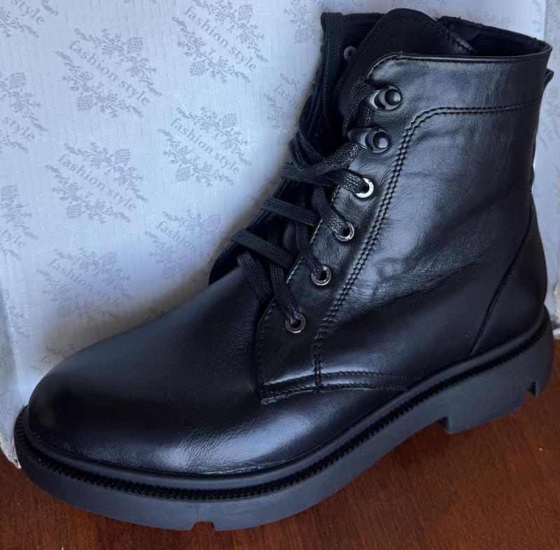 Жіночі шкіряна зимові ботинки. Всередині вовна. Шнурівка+застібка. 36 розмір