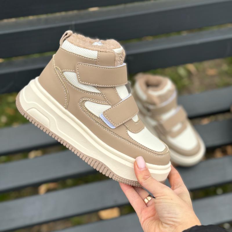 Зимние Хайтопы стильная новинка тм Том.М Верх качественная эко кожа Застежка двумя широкими липучками Внутри густой теплый мех (натуральная овчина 60%). цвет беж +белый Цвивл 1380 33 размер 21.3 см