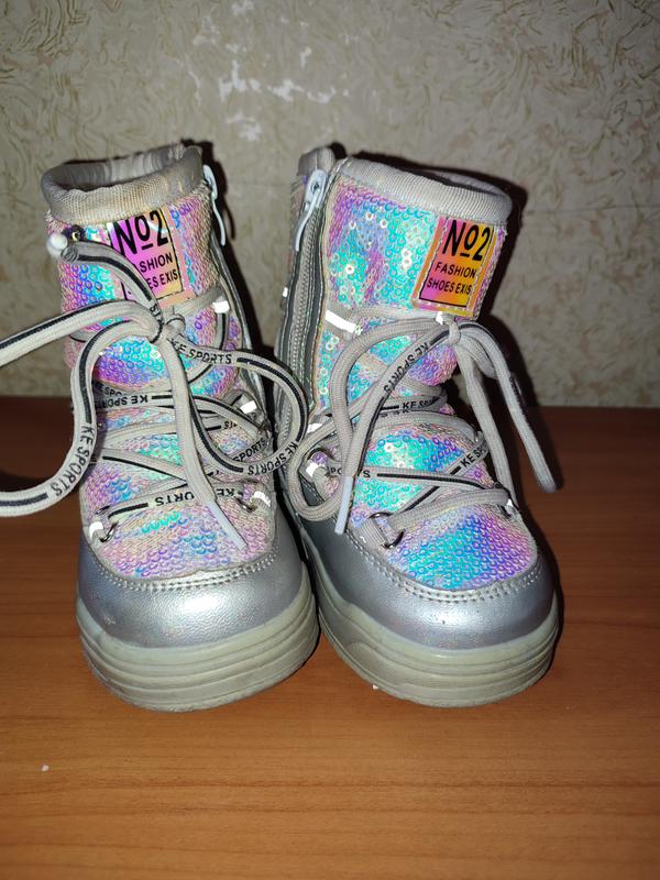 Ботинки зимние, теплые, стелька 15 см. Расшитые пайетками, на шнуровке, сбоку молния.