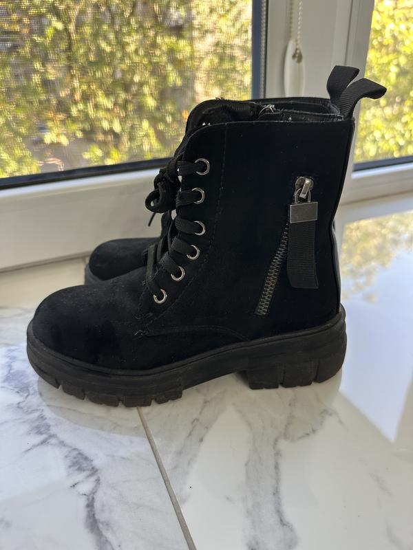 Продам ❤️ осінні чорні черевики. 33 розмір. Є застібка змійка і є шнурки. Устілка 21 см. ✅ дуже хороший ✅ 285 грн довжина устілки - 21 см. 👒 Дивіться усі мої оголошення.