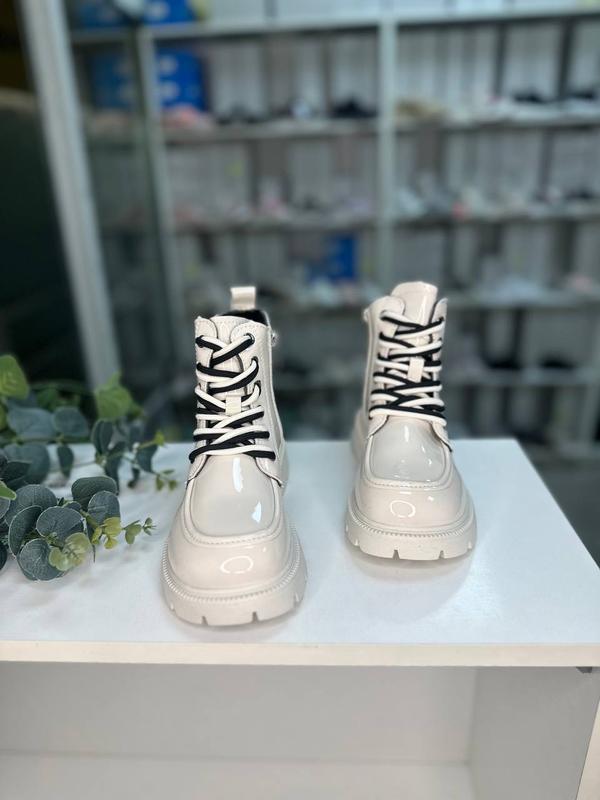 Осінні демі тімби для дівчаток🍂 Стильно виглядають на ніжці🤍 Верх - еко лак Всередині утеплені плюшем, устілка теж утеплена👌 П'яточка тверда,гарно триматиме ніжку. Присутній боковий замочок ✅ Обʼєм можна підтягнути шнурівкою Підошва гарно гнеться Замір всередині, устілка не виймається Розмір: 37р - 22 см 📏 Заміри виконані вручну, можлива похибка 1-2 мм. 🚙 Відправка протягом 1-2 робочих днів Укр та Новою поштою. 💳 Наложений платіж по передоплаті 150 грн